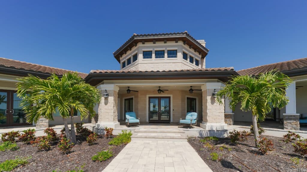The architecture at Sanctuary Cove is inspired by Mediterranean coastal villages, and some of the extras include: quartz counter tops, elaborate porches, decorative porches, GE appliances, and large covered lanais from where you can enjoy sweeping views of the Manatee River and the Bradenton skyline. Even the smallest floor plan, the two-bedroom Grand Cayman, offers 1,926 square feet of interior.